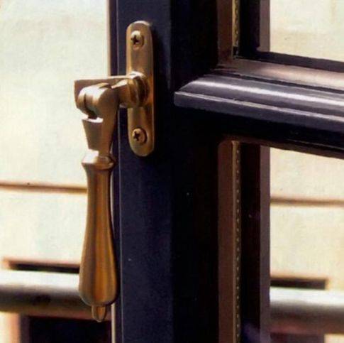 Для современных деревянных окон используют высококачественную крепежную, запорную, а также декоративную фурнитуру от ведущих производителей Австрии, Германии, США, Швеции, Дании и Норвегии. Видимые ее части, например ручки, чаше всего золотистого цвета, хотя вариантов может быть великое множество.