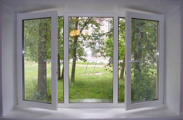 Из названия очевидно, что данная конструкция имеет три створки. В большинстве случаев трехстворчатые окна из ПВХ профиля используются в наиболее просторных комнатах, залах, гостиных столовых и им подобных помещениях. Могут изготавливаться в самых различных вариантах по количеству открывающихся створок.