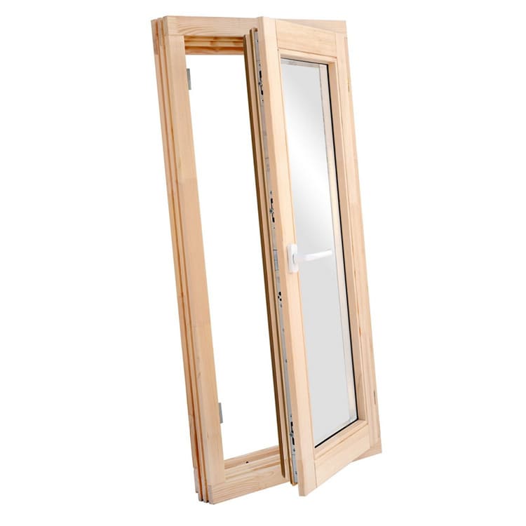 Финский оконный блок изготавливают не из клееного бруса, а из массива дерева. Небольшое сечение такого окна (40×40 мм) не позволяет обеспечить плотный прижим фурнитуры по периметру, поэтому финские окна не бывают поворотно-откидными.