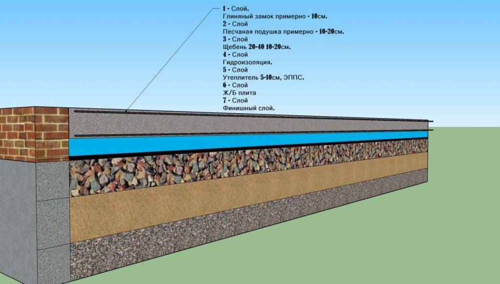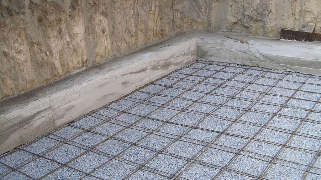 Это своеобразная сплошная цельная плита различной конфигурации. Заливается в основном из бетона М200. При этом ее толщина должна быть не меньше 100 мм.