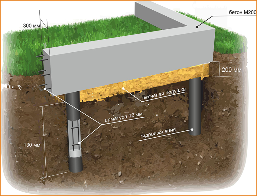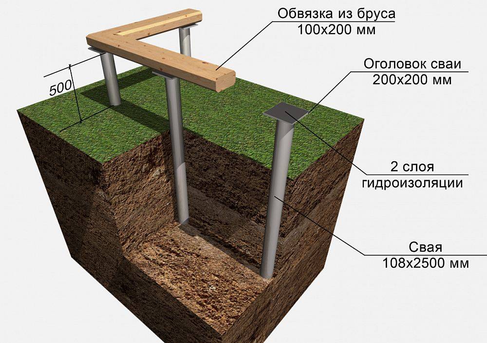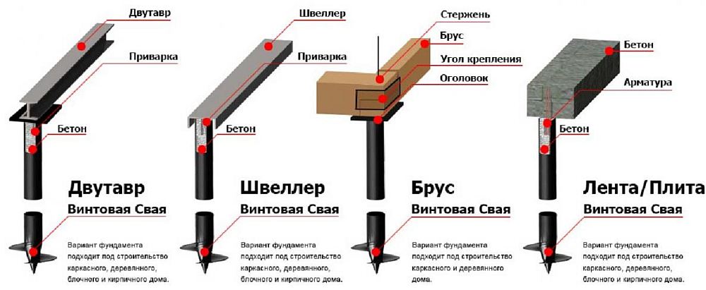 Существуют различные варианты конструкции свайного фундамента, обладающие собственной спецификой.