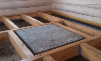 Далее устанавливается деревянная опалубка по периметру печного фундамента, в нее помещается арматурный каркас. На следующем этапе проводится заливка бетона. Верхний уровень основания должен быть примерно на 5-6 см ниже пола, который будет устанавливаться в бане. Когда бетон окончательно затвердеет, нужно снять опалубку и обработать стенки печного фундамента гидроизоляцией – например, гудроном.На следующей стадии можно приступать к монтажу сруба. Как правило, при строительстве деревянной бани его устанавливают на металлический ростверк. Данная конструкция создается по простой схеме: на оголовках свай закрепляются жесткие металлические швеллеры или двутавровые балки по всему периметру фундамента, а также в его центральных зонах. Эти элементы соединяются с оголовками с помощью электросварки.