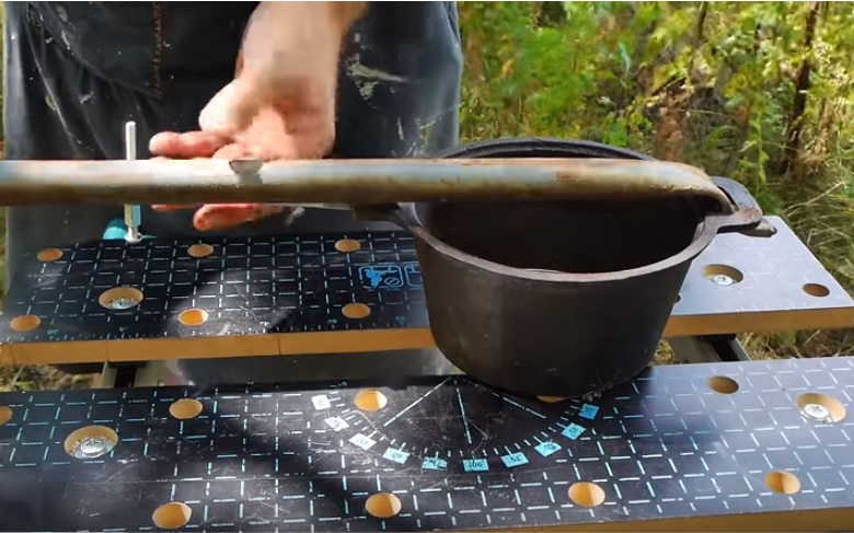 Для начала соорудите печь для плавки алюминия. Из огнетушителя сделайте емкость, в которой будет плавится алюминий (срежьте верхнюю часть). Просверлите два отверстия под ручки. Ими будет стальная проволока.