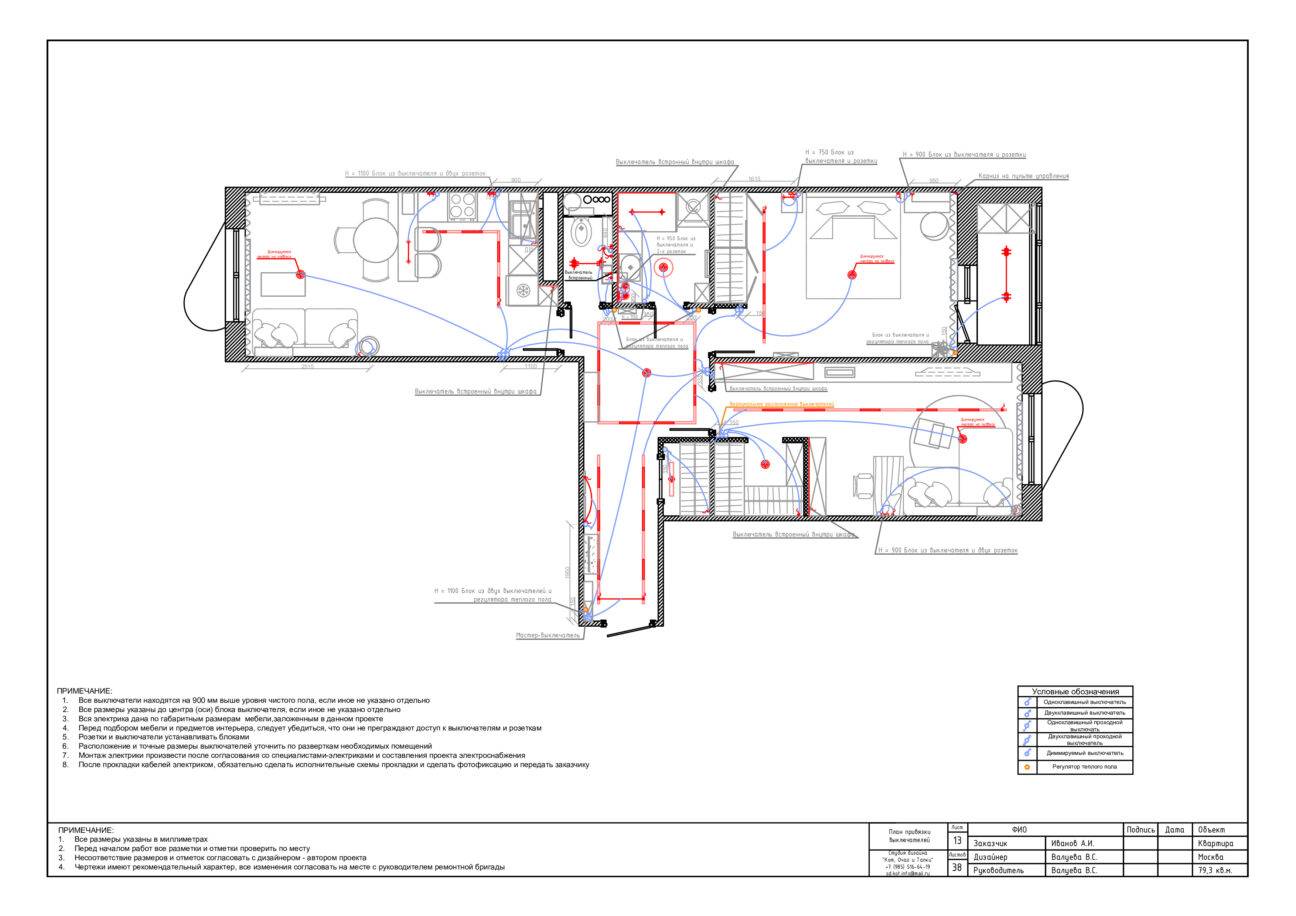 Что можно сделать самостоятельно. Провести точные замеры помещения, наложить на чертёж расположение мебели с учётом её размеров и отметить расположение розеток, выключателей и светильников с учётом расстановки мебели.
