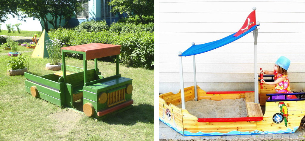 Второе, что будет очень полезно, если детей двое и более с достаточной разницей в возрасте – песочница-грузовик, или смотря по склонностям старшего (старшей) песочница-кораблик. В последнем случае рубка с ходовым мостиком располагаются, как на любом приличном «транспортюге», в корме. Тогда младшие займутся себе своими песочными делами, не чувствуя назойливой опеки, а старший «пестун» сможет исполнять свои обязанности буквально играючи, не скучая. А буде когда-нибудь возьмется за руль или встанет к штурвалу профессионально, у него на уровне рефлексов уже отложилось: главное в рейсе – пассажиры и груз.