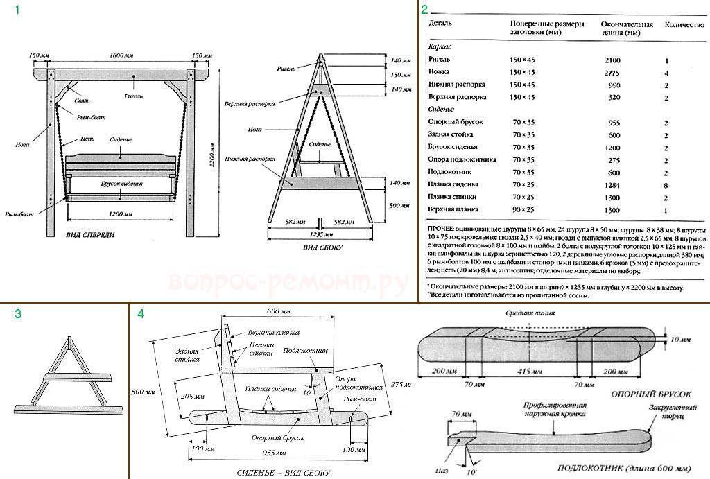 Конструкция садовых качелей, чертежи