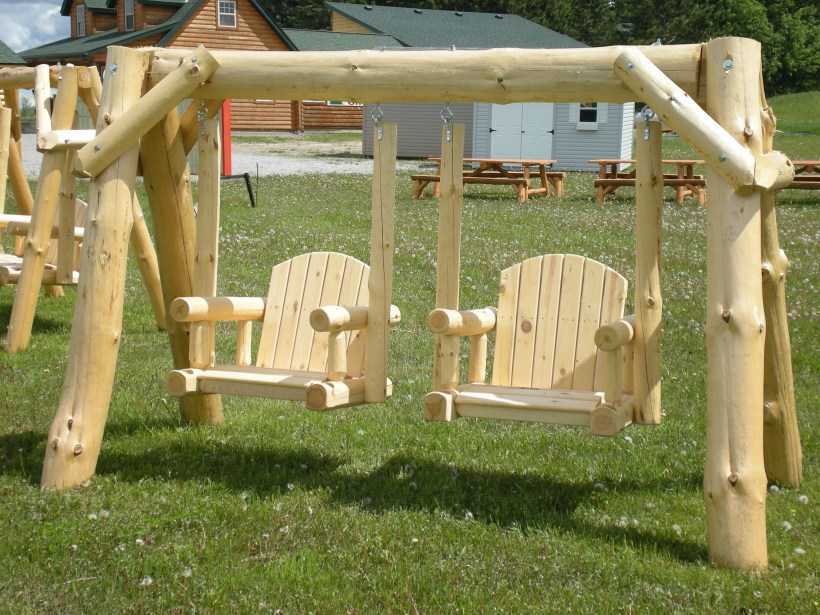 Из древесины можно сделать качели для дачи любого вида и дизайна, и пиломатериалы имеют много преимуществ: