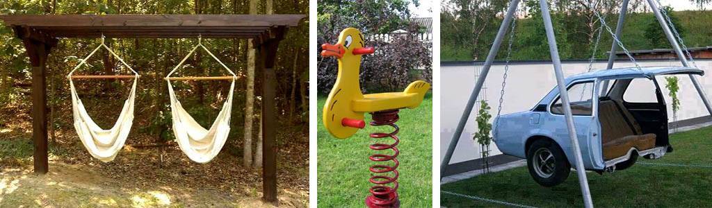 Самостоятельно можно изготовить качели-балансир, качели-гамак, качели-диван. Особого внимания заслуживают конструкции, далекие от классического представления конструкции качелей. Необычные качели могут быть: