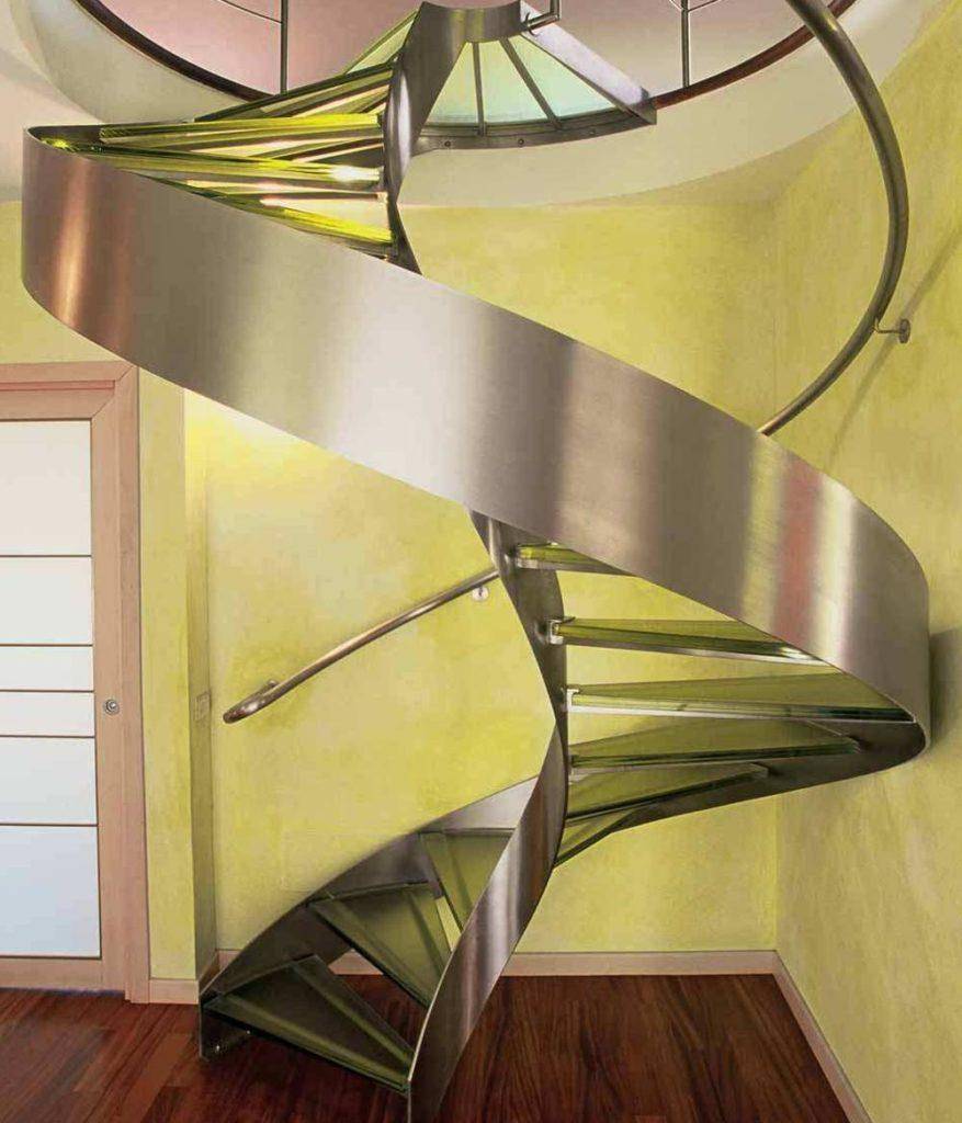Благодаря таким лестничным конструкциям можно наполнить дом уютом и комфортом. Правда, в таком случае весь стиль помещения непременно должен соответствовать такому образу. Например, нарочито элегантный дизайн лестницы смогут подчеркнуть потертые фрески и антикварная мебель.Идеальным материалом для таких конструкций считается камень, также подойдёт металл либо дерево.