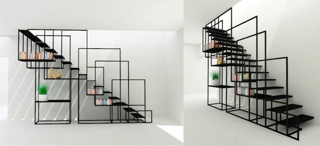 Оригинальной книжной полкой может стать и сама лестничная конструкция.