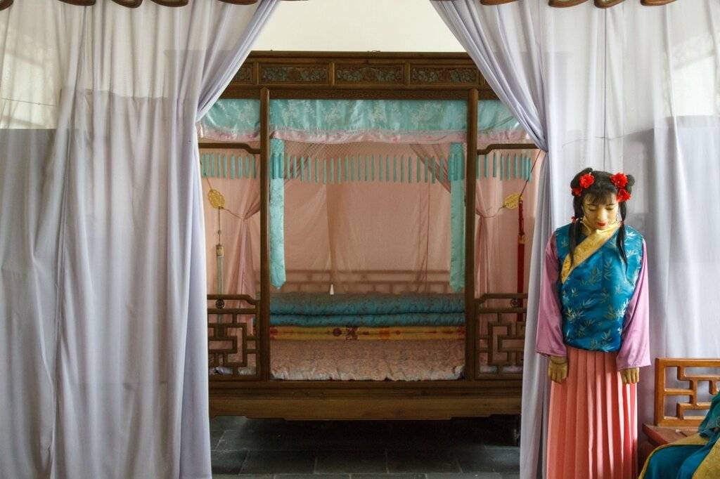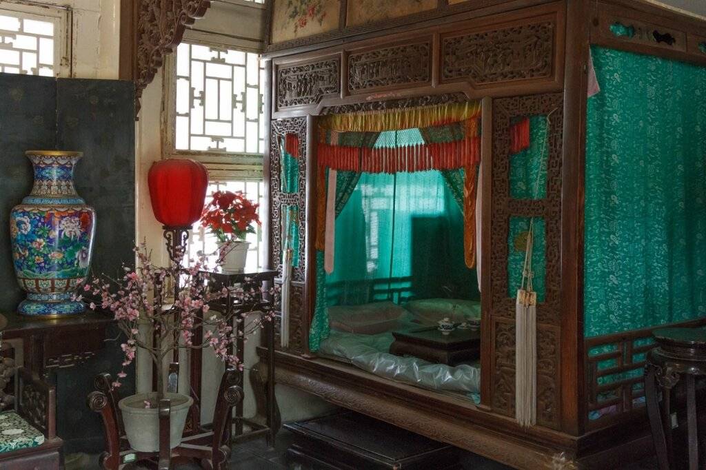 Спальни в китайских домах занимали самую дальнюю часть помещения, куда не допускались посторонние. Кровати в богатых домах часто представляли собой своеобразную комнату в комнате — имели собственные стены, потолок, которые украшала тонкая резьба, рисунки, шелковые ткани. Кровати могли быть как прямоугольные, так и круглые.