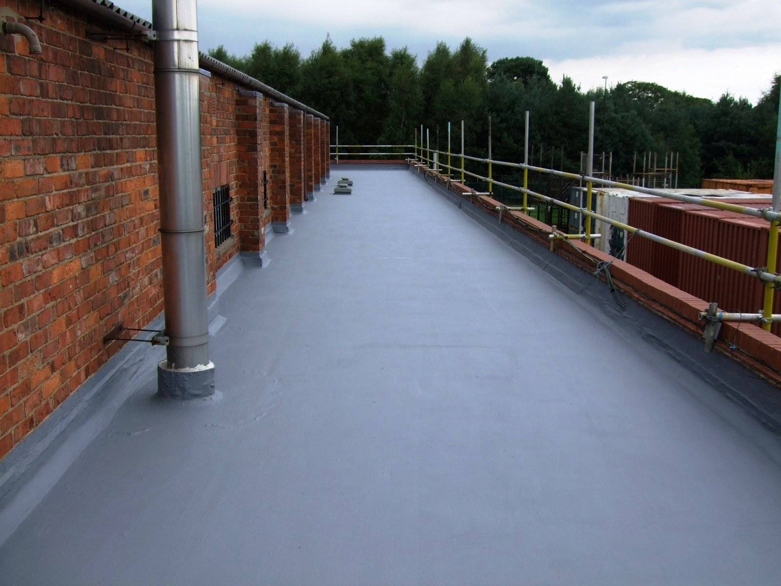 Это непрерывная гидроизоляционная мембрана, которая может состоять из двух или одного компонента. В первом случае укладывается армирующий слой из стекловолокна, поверх которого наносится второй пластиковый слой. В результате получается прочная, непрерывная ткань, полностью герметичная и устойчивая к давлению. Второй вариант — слой жидкого полимера, который затвердевает и приобретает свойства резины (такой тип кровли называется жидкой резиной).