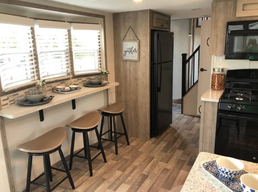 Интерьер со столешницей у окна уместен для небольших помещений или зонирования. Одной из вариаций является барная стойка.