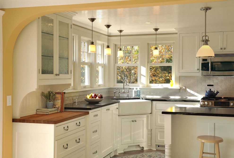 - если кухня с двумя окнами на смежных стенах, примыкающих к углу, то уместнее угловая или L-образная мойка.