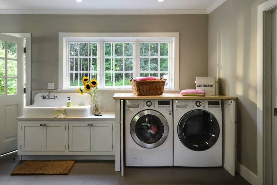- если окна два, то раковину расположите между ними – этот вариант дает повесить сушилку в удобном месте;
