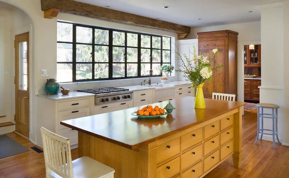 Дизайн кухни с окном в рабочей зоне зависит от масштаба помещения, расположения проема, общего дизайна и пожеланий хозяев. Совмещая рабочую поверхность с окном, нужно знать некоторые особенности обустройства.