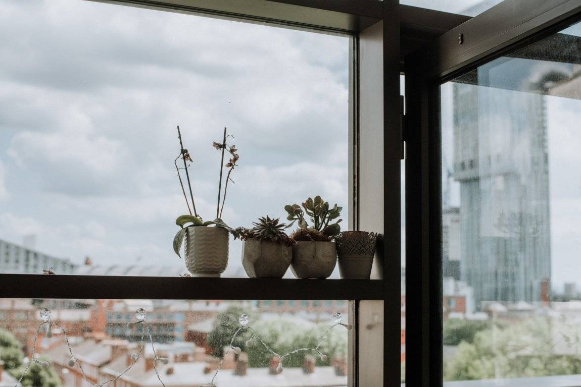 Отлично смотрятся многолетники на узком подоконнике. Эти растения обычно небольшие по высоте. Такое украшение может быть дополнено LED-подсветкой. Такое оформление будет идеально для окон с идеально чистыми стеклами.