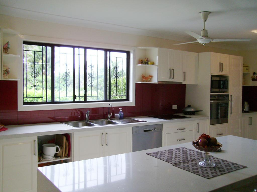 На панель наносится любой рисунок, подходящий под ваш дизайн. Монолитность стекла гарантирует легкий уход за поверхностью, на его гладкой поверхности не возникнет грибка или плесени, как на швах керамической плитки. Фартук из такого стекла можно оформить под аквариум, а со светодиодной подсветкой он может еще и «ожить».