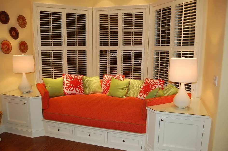 Иногда под сиденьями имеются встроенные ящики для хранения, а само мебельное изделие украшено мягкими подушками.