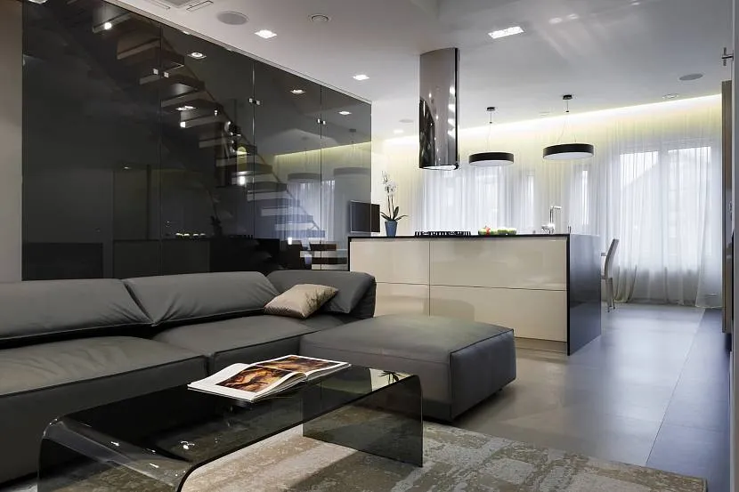 Общественные зоны таунхаусов имеют студийную планировку, благодаря чему пространство выглядит просторным и светлым. Но в таких помещениях возникает проблема зонирования. Как ее решить? Дизайнер интерьера Анжелика Прудникова советует не возводить глухие перегородки, а использовать интересные декоративные приемы.