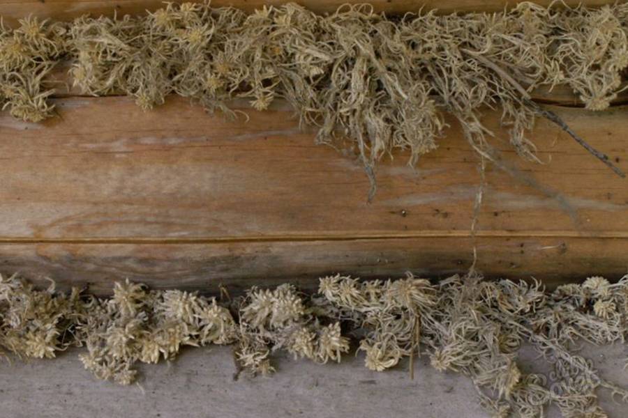 Перед началом работ важно хорошо подготовить мох. Его собирают, полностью очищают и просушивают, но не до конца. Пучки должны оставаться слегка влажными
