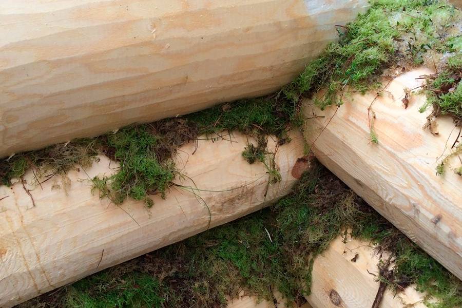 Мох рекомендуется использовать сразу после возведения основной конструкции. Это упростить обработку и даст лучший результат. После начала эксплуатации бани следует еще раз пройти все швы мхом через 1-2 года.