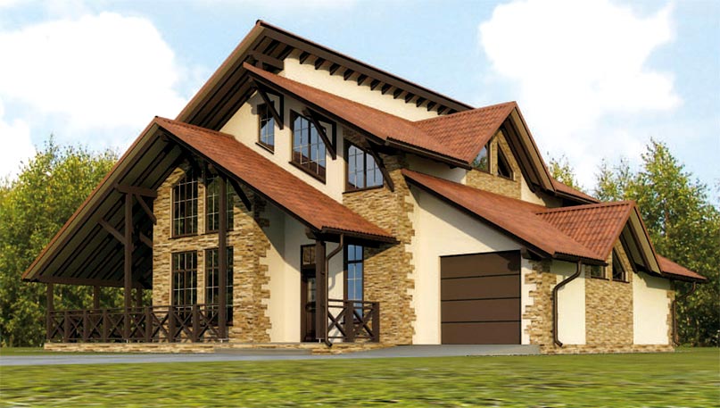 Каркасный дом может быть сложной и интересной архитектурной формы