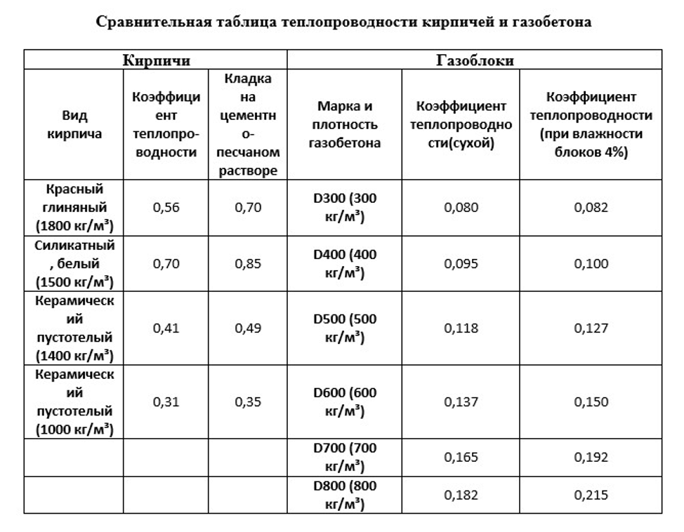 В случае с газобетонными блоками используется специальный клей для тонких швов, что уменьшает теплопотери конструкции, но всё равно, реальные показатели кладки газобетона по теплопроводимости ниже чем представленные в таблице выше.
