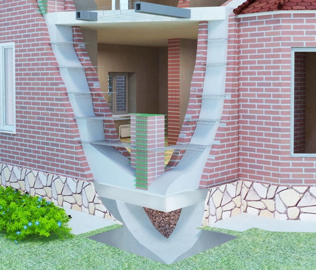 Единая монолитная конструкция обладает высокими техническими показателями прочности. Каркас сооружения играет роль широкой арматуры в бетоне. Данная строительная технология позволяет использовать различные комбинации материалов.