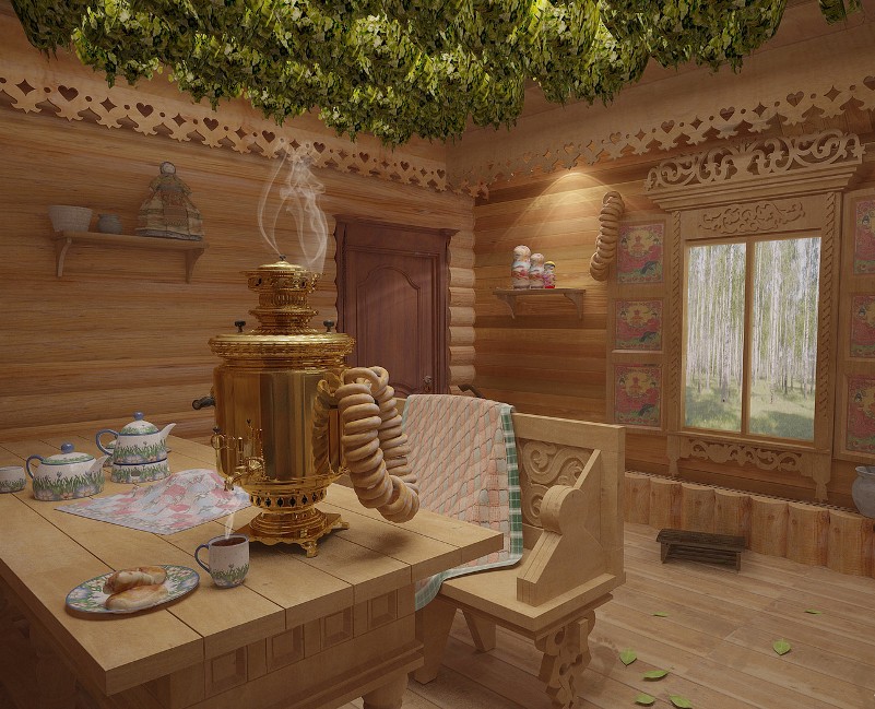 Интерьер деревянного дома в русском стиле