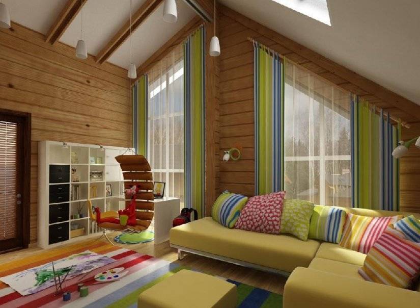 Стильный и оригинальный шаг: белые шторы вместе с дом из клееного бруса внутри фото белыми же элементами выполняют роль контраста для более ярких цветов. Снаружи Для любых ответственных хозяев вид загородного дома снаружи ничуть не менее важен, чем его интерьер. Если нет желания или возможности использовать какие-либо облицовочные материалы, обязательно нужно будет пропитать древесину средствами, защищающими от сырости и насекомых. После этого поверхность лакируют и покрывают красочным слоем.