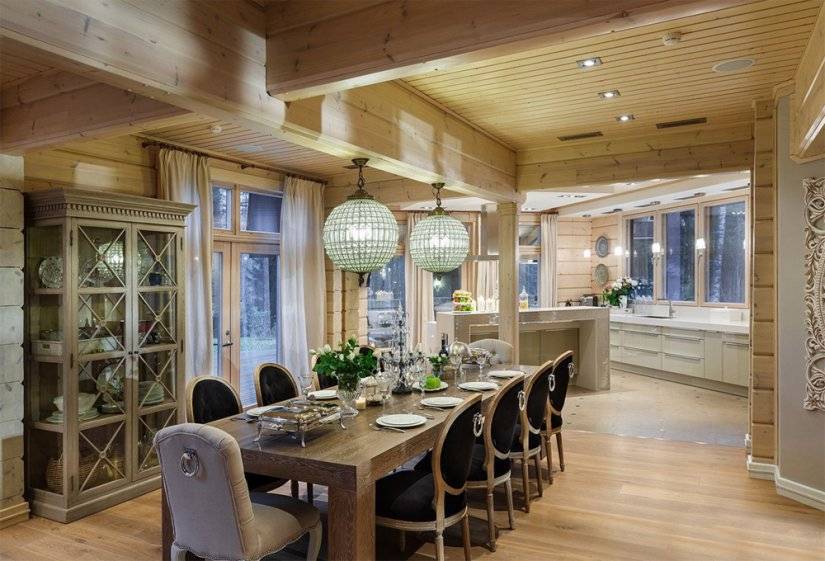 Обстановка и интерьер дома из бревна способствует созданию неповторимой атмосферы и передает волшебную энергетику леса. Такое жилье сочетает в себе надежность, добротность, экологичность и прекрасно подходит для большой семьи.