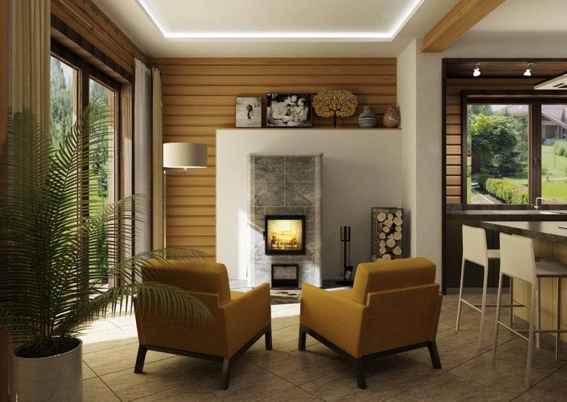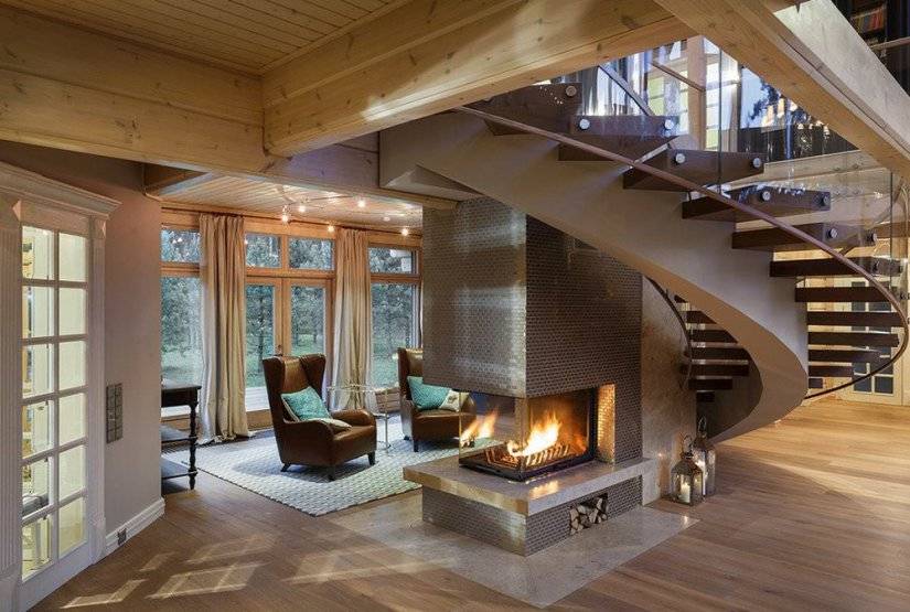 Если украсить интерьер деревянных домов массивным камином, обилием старинных предметов, то он превратиться в русскую избу, как это вы можете увидеть на фото.
