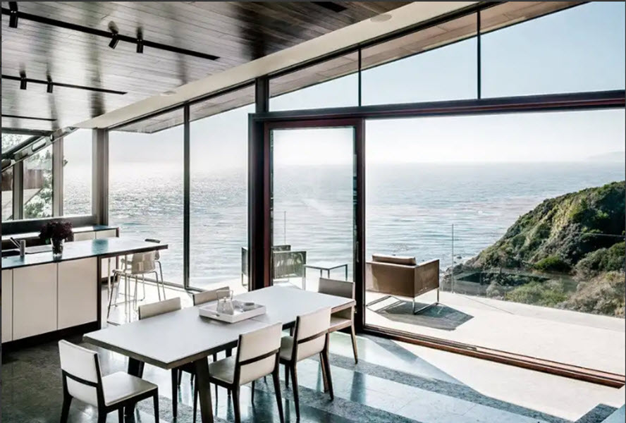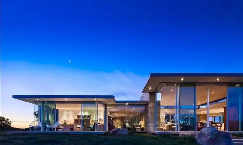 Если посмотреть внимательно, можно заметить, что заказанные и установленные в доме стекла отражают свет и они немного затемнены. Это было сделано специально, чтобы обеспечить максимальную приватность жизни. Что касается начинки, используется двухкамерный стеклопакет. Каждый из них весит по 300 килограмм.