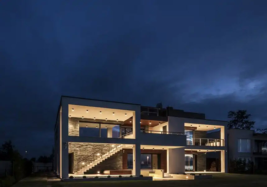 - Использование современных технологий при строительстве частного дома. Применение герметичных и энергосберегающих материалов, солнечных коллекторов, системы «умный дом» и т.д. За счет этого всего получается постройка высочайшего качества и надежности.