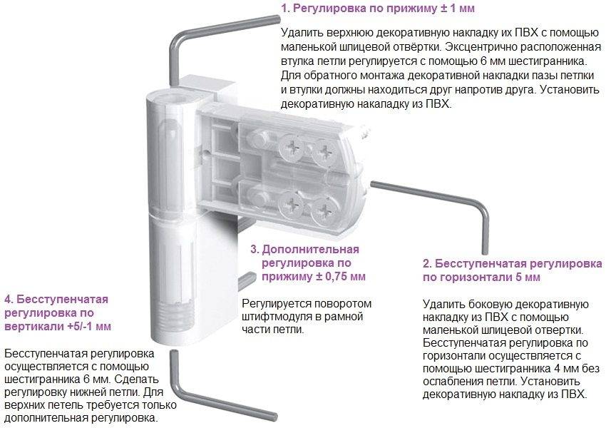 Схематическая инструкция для самостоятельного регулирования положения балконной двери