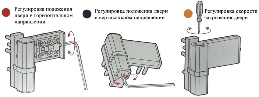 В случае неплотного прилегания двери, необходимо провести регулировку эксцентриков. Это выполняется с помощью подходящих шестигранников, иногда могут понадобиться пассатижи. Сзади двери регулировка производится с помощью специальных винтов, которые располагаются на нижних и верхних петлях. Чаще всего вместе с данной фурнитурой при ее установке имеется инструкция по регулировке. Но в случае ее отсутствия не стоит отчаиваться, так как обычно этот процесс не вызывает никаких проблем и сложностей.