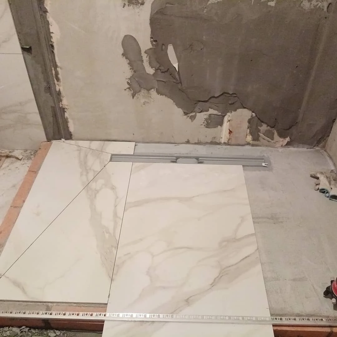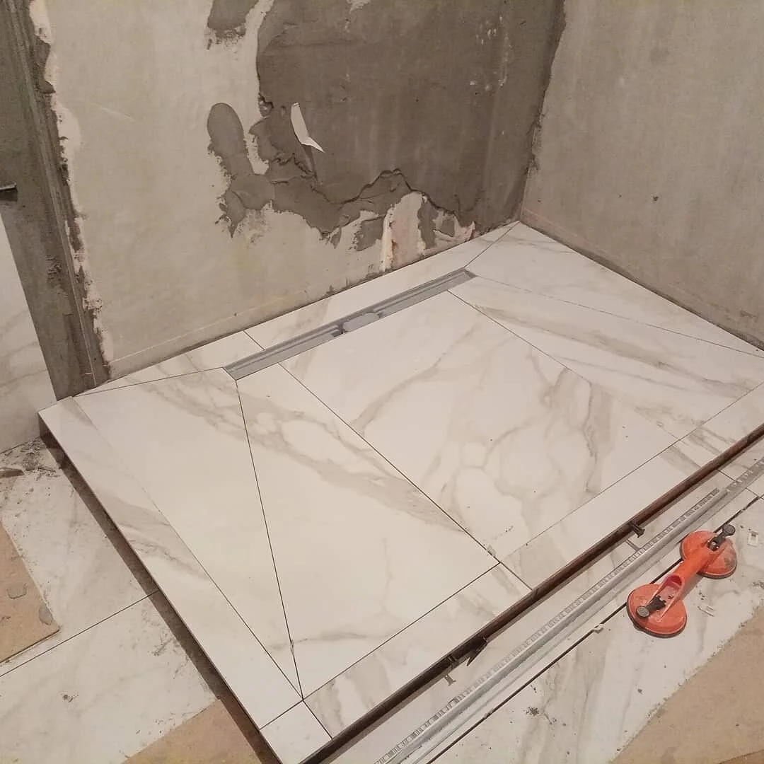 - Следует помнить, что укладывать плитку лучше с самого далекого уголка душевого поддона.