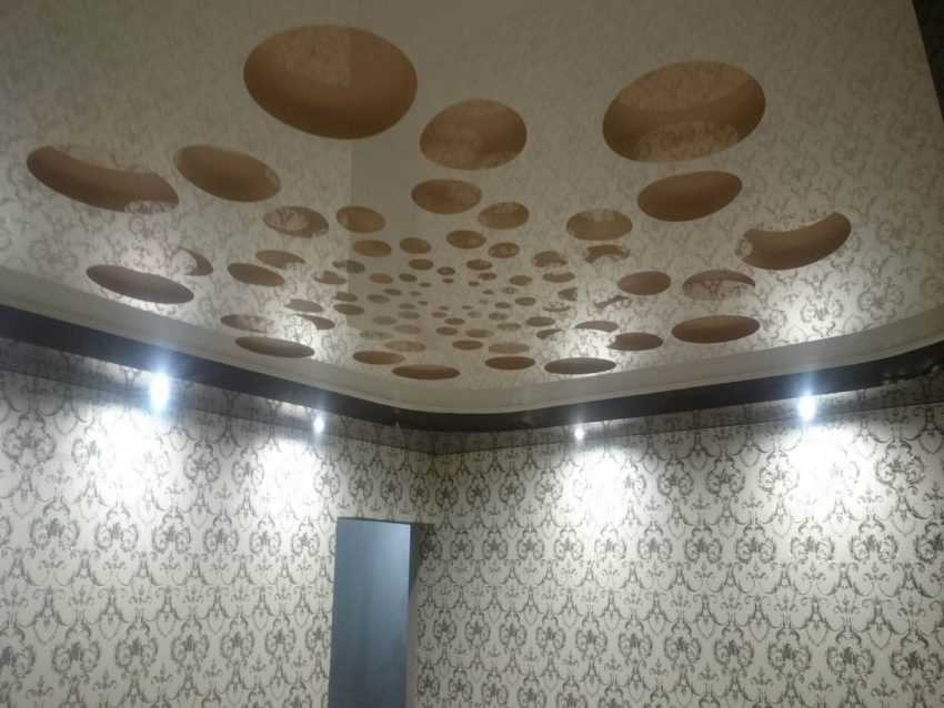 - Такие потолки разнообразят дизайн комнаты, ведь можно комбинировать разные цвета и фактуры покрытий, а также использовать роспись или фотопечать на потолке.