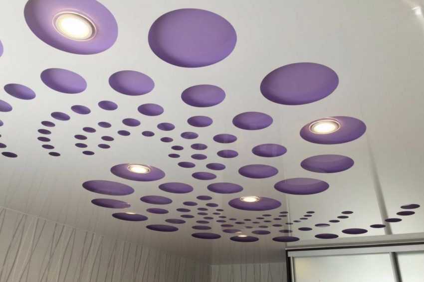 Перфорированная фактура очень оригинальна. Отверстия на полотне могут быть разных размеров и форм. Они располагаются на потолке либо четкими рядами, либо в виде узоров, либо просто россыпью.