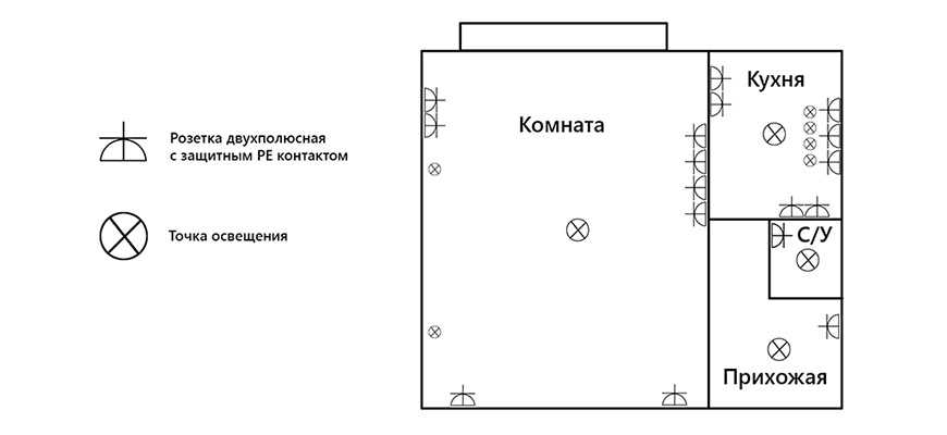 Схема электропроводки для однокомнатного жилья.