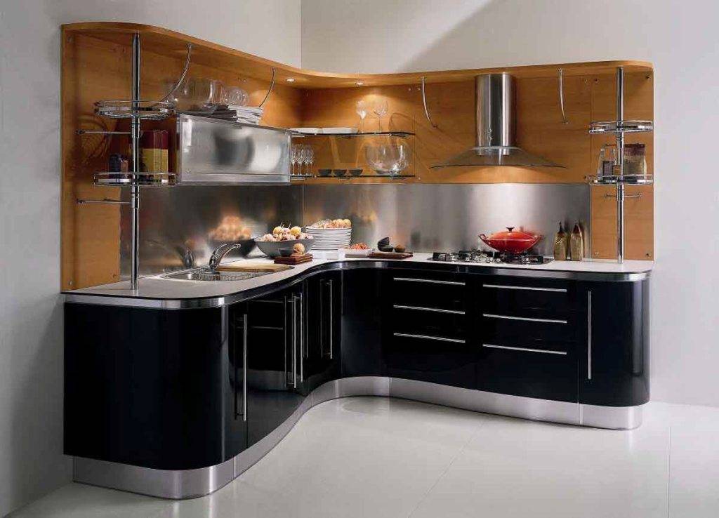 2. В гарнитуре для маленькой кухни угол предпочитают делать прямым и весьма компактным. По традиции здесь размещают мойку. Впоследствии от хозяев часто поступают жалобы на неудобство пользования мойкой, поскольку места перед ней крайне мало. Это особенно ощутимо, ели кто-то из хозяев обладает крупной комплекцией.