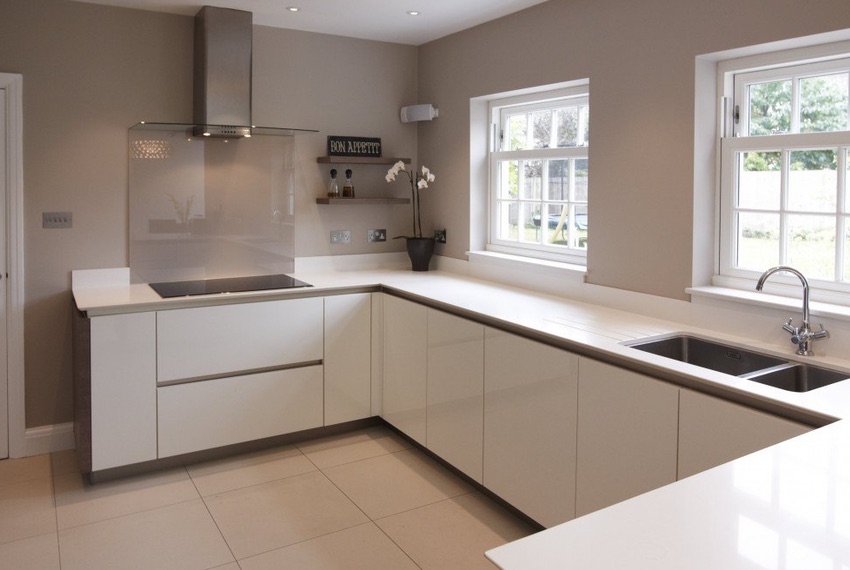 Угловая. Эргономику кухни реализовать на ней проще всего. В угол или около него задвигают зону мойки, по обе стороны будут располагаться остальные вершины. Чтобы было комфортнее, закажите скошенный угловой модуль.