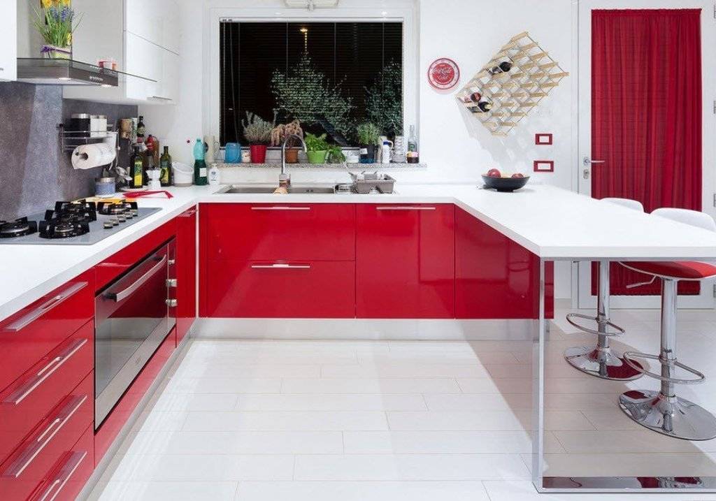 Эргономичная кухня с П-образной планировкой практически не отличается от других способов оформления, но имеет свою особенность. Подобная планировка идеальна для просторной комнаты, где много свободного места. Например, можно оборудовать рабочее место в обеденную зону возле окна, где расстояние между перпендикулярными напольными тумбами должно быть не более 1,2-1,5 метра. Узкий, или наоборот широкий проход создает дискомфорт хозяйке при передвижении между рабочими модулями. Здесь уместно расположение кухни, где холодильник мойка и плита параллельны столу. Для планирования эргономики кухонного стола можно воспользоваться услугами дизайнера. Или сделать самим, с учетом советов по кухонному зонированию с соблюдением рекомендаций по оптимальному расстоянию между рабочими поверхностями.