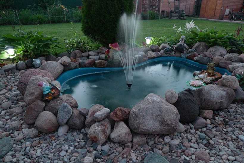Беря во внимание размеры внутреннего двора, не сделайте конструкцию чересчур маленькой либо, наоборот, крупной! В противном случае вам не удастся добиться того максимального зрительного эффекта от присутствия новой постройки, который возможен. И не забывайте, что мощность насосных установок должна подбираться прямо пропорционально габаритам возводимой конструкции на даче