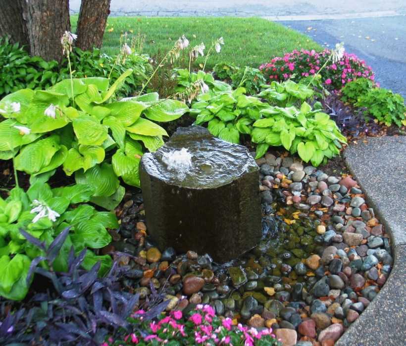 - Фонтан с циркулярным насосом: устройство погружается на дно и обеспечивает постоянную циркуляцию воды. Это не только наиболее практичный вариант, он и выглядит гораздо эффективнее.