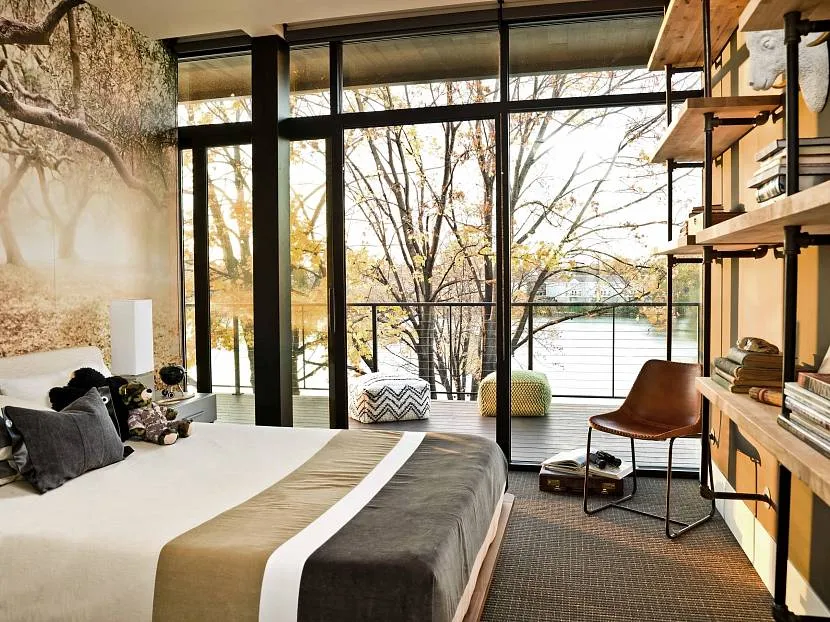 Стильный загородный дом с окнами от пола до потолка