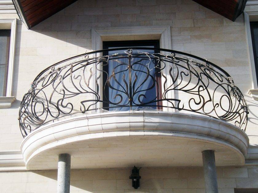 Для производства применяют плоский вертикальный профиль, который позволяет подчеркнуть изящный дизайн кованых изделий. Также достаточно часто используют изогнутый срез, дугообразные элементы ограждения, как правило, выступают вперед. На балконах такой формы отлично смотрятся кадки и кашпо с цветами.