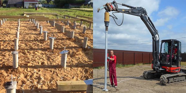 Чтобы произвести бурение, используют специальный станок. Бурение происходит двумя способами: ударный, вибрационный. Затем происходит погружение свай (методы будут рассматриваться далее), их бетонирование