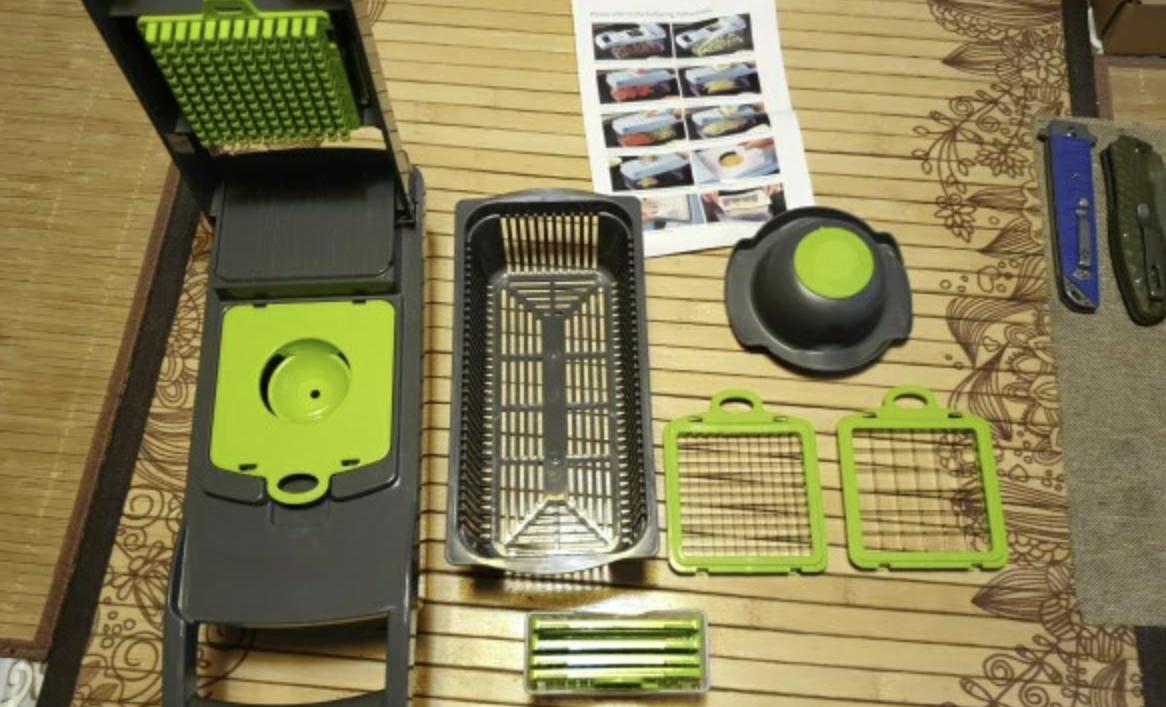 Не менее удобна доска-трансформер со съёмными контейнерами. Можно нарезать, рассортировать, промыть овощи, а затем отнести, не растеряв по дороге к плите для дальнейшего приготовления.